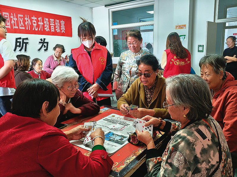 在鹽州路街道振興社區(qū),年過六旬的王文駐和李媛是老搭檔。王文駐打出一張關(guān)鍵牌,李媛心領(lǐng)神會,立刻跟上助攻,得分后兩人相視一笑。“平時我們經(jīng)常一起打牌,但參加社區(qū)比賽還是頭一回,名次不重要,關(guān)鍵是鄰里相親的氛圍好?!蓖跷鸟v笑著說。