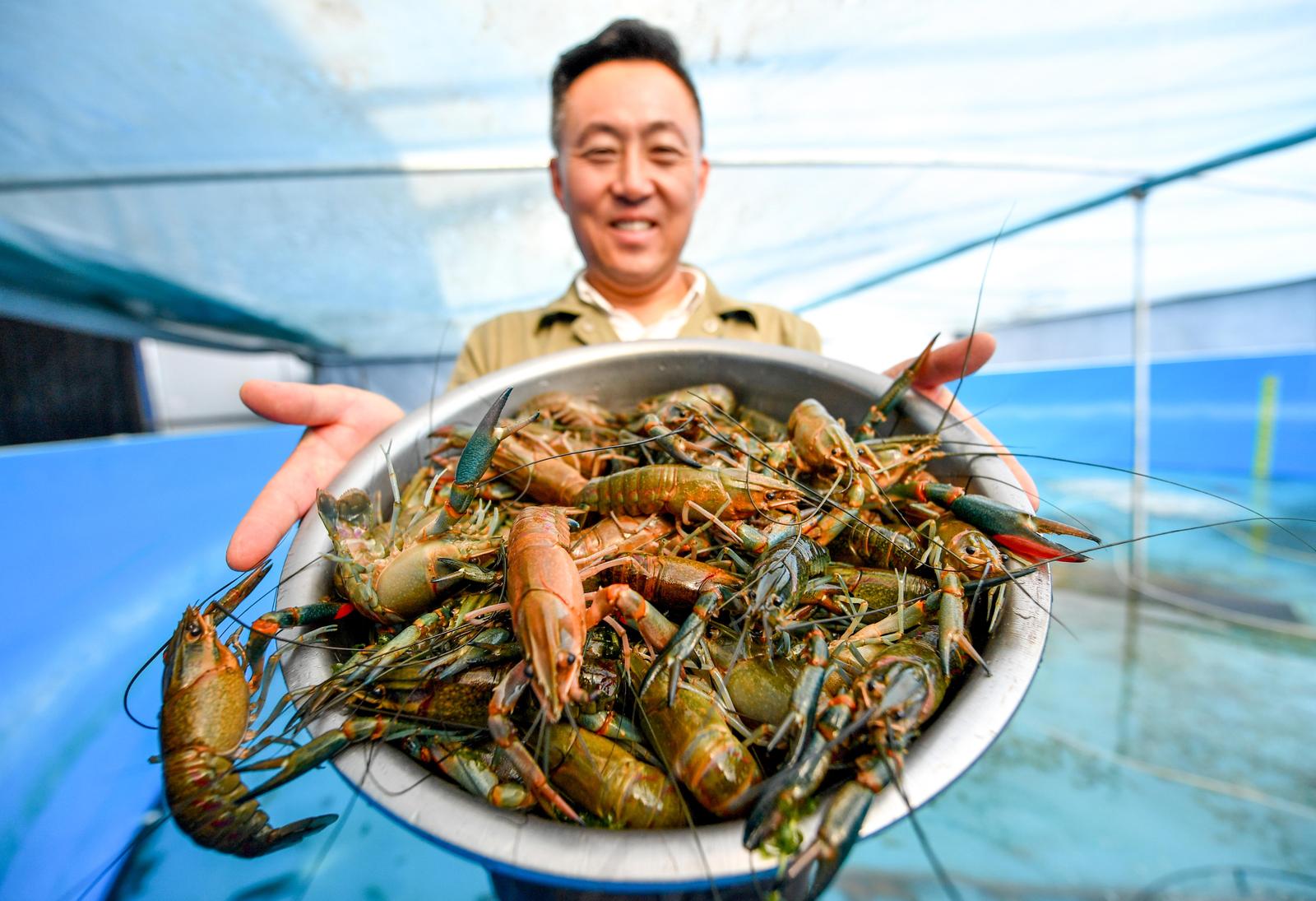 10月30日,在石嘴山市大武口區(qū)星海鎮(zhèn)的寧夏牧豐農(nóng)業(yè)發(fā)展專業(yè)合作社,工作人員展示即將上市的澳洲淡水龍蝦。近年來,石嘴山市充分利用村集體閑置鹽堿地,開展“鹽堿地+特色水產(chǎn)養(yǎng)殖”,通過新技術(shù)、新模式的推廣應(yīng)用,提高鹽堿地綜合利用效益。 本報(bào)記者 王曉龍 白茹 見習(xí)記者 符雨瀟 實(shí)習(xí)生 付冰 攝
