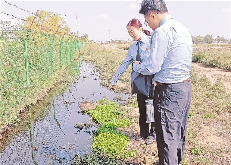 銀川市西夏區(qū)人民檢察院檢察官現(xiàn)場(chǎng)查看水質(zhì)狀況。