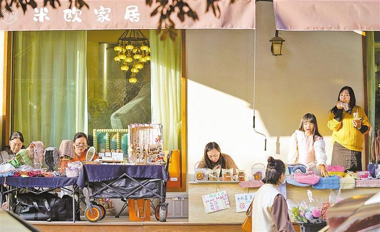 故事始于今年初春。祥安巷花倉(cāng)咖啡店店主發(fā)現(xiàn),幾位熟客在享受咖啡時(shí)光時(shí),喜歡通過(guò)手工創(chuàng)作交流。她們手藝精湛,所制作品常常吸引來(lái)往顧客的目光。于是,一個(gè)溫暖而富有創(chuàng)意的想法萌發(fā),花倉(cāng)咖啡店店主聯(lián)合幾位手工達(dá)人,在周末下午辟出店門口的小空地,為手作愛好者搭建了一個(gè)展示與出售原創(chuàng)作品的平臺(tái)。