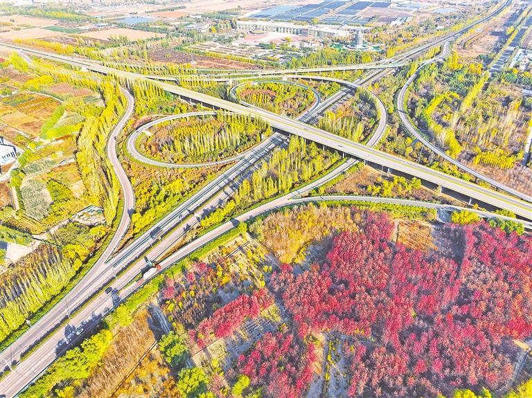 11月1日,深秋時(shí)節(jié)的銀川市繞城高速公路賀蘭立交橋,高架橋兩側(cè)各種樹(shù)木五彩繽紛,風(fēng)景美如畫(huà)卷。記者 馬楠 攝