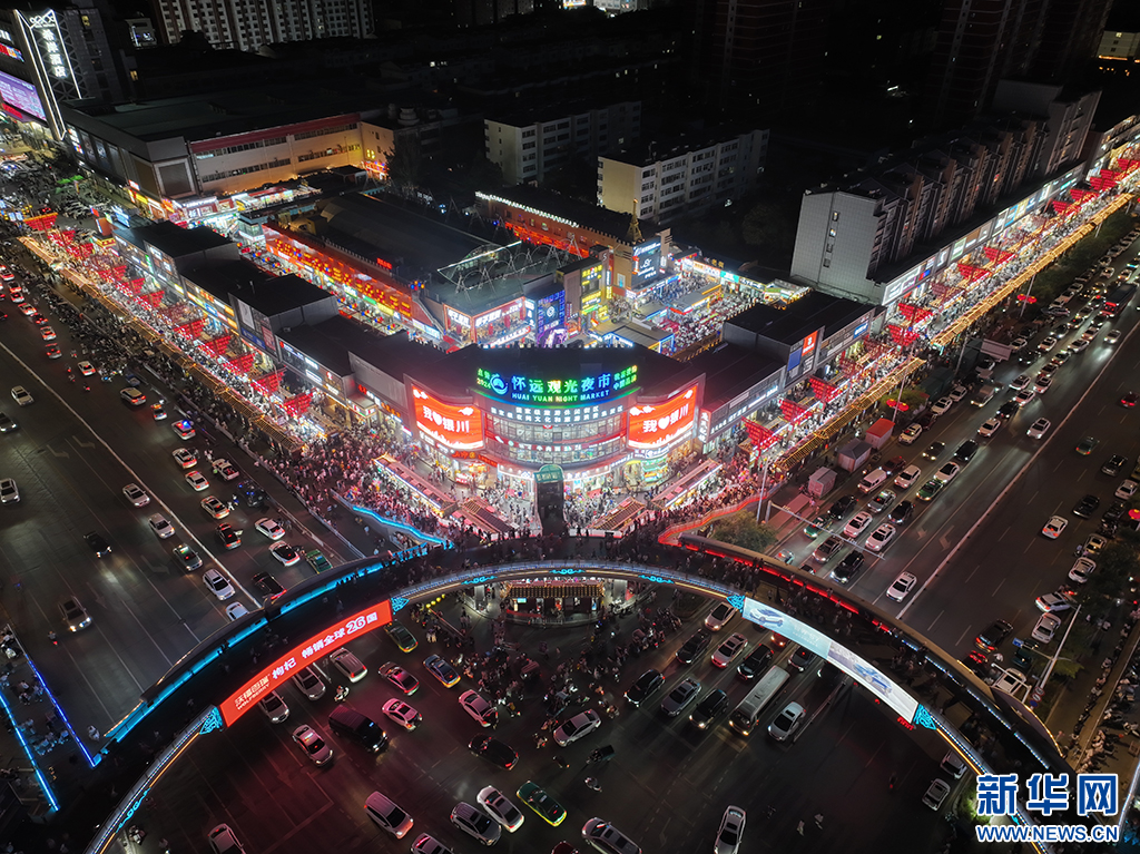 夜幕下的懷遠夜市熱鬧非凡。(無人機照片)