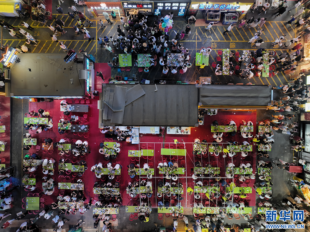 在懷遠夜市內,燒烤攤位生意火熱。(無人機照片)
