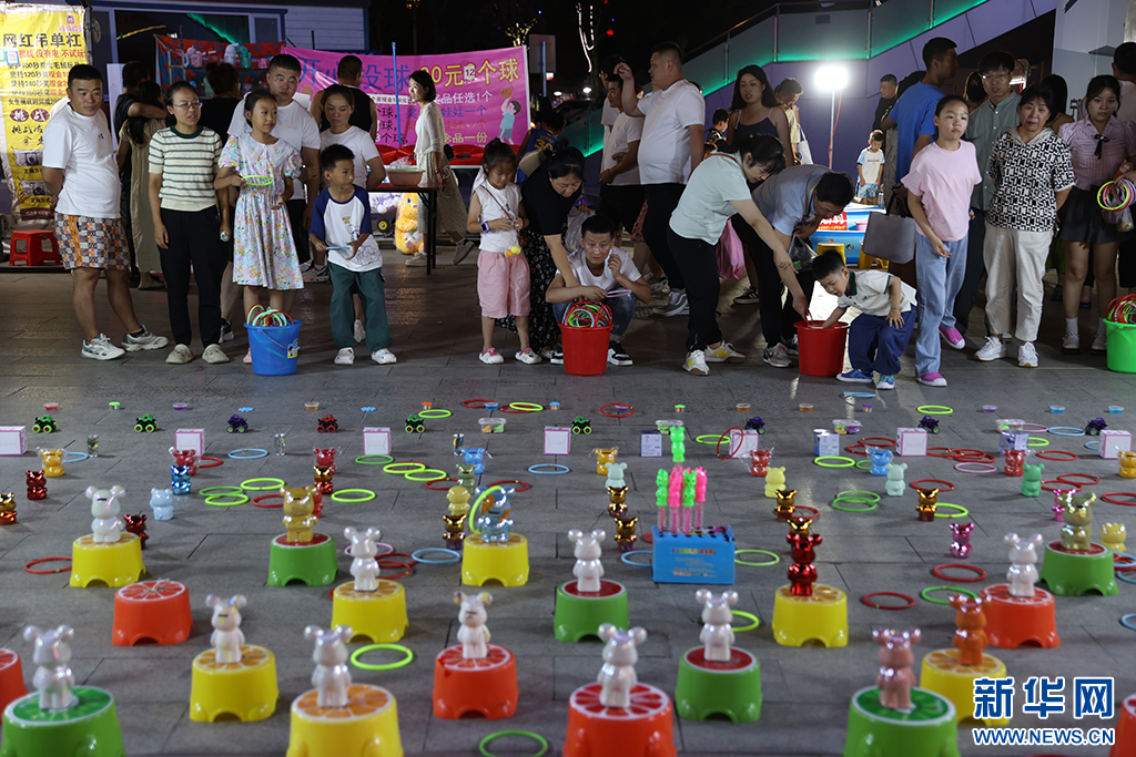 在懷遠夜市上,套圈項目吸引著小朋友。