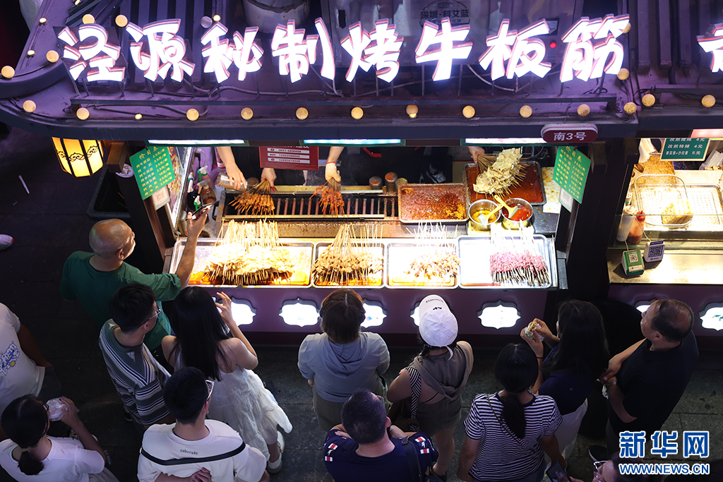 當下正值暑期旺季,立秋后的寧夏夜晚涼爽怡人,在銀川懷遠夜市,來自全國各地的游客和本地市民絡繹不絕,夜市里“煙火氣”升騰,銀川“夜經濟”在火熱中不斷綻放。新華網 張潔龍 攝
