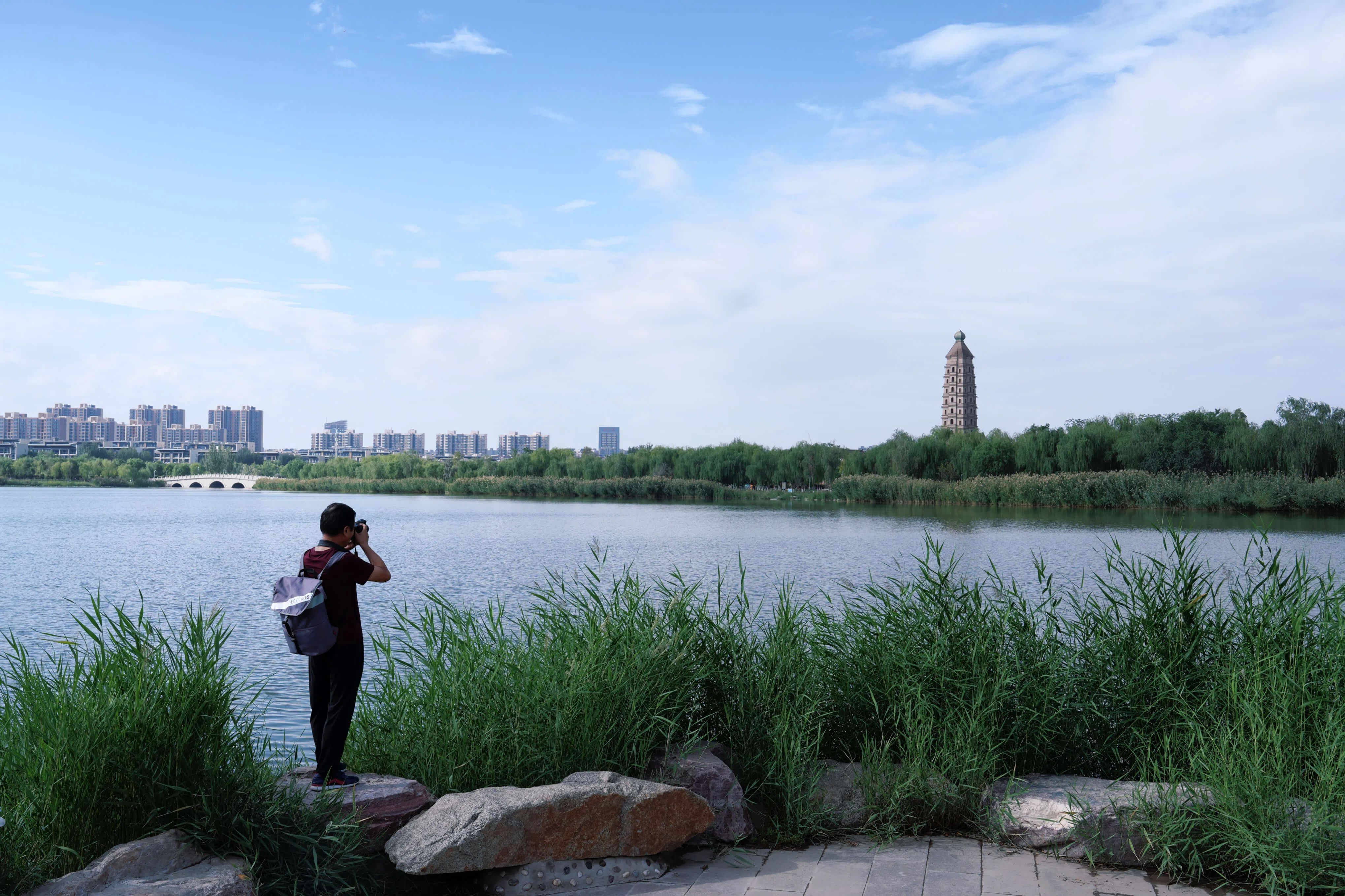 8月25日,市民在銀川市海寶公園拍攝。新華社發(fā)?。ㄌ谱襄窋z)