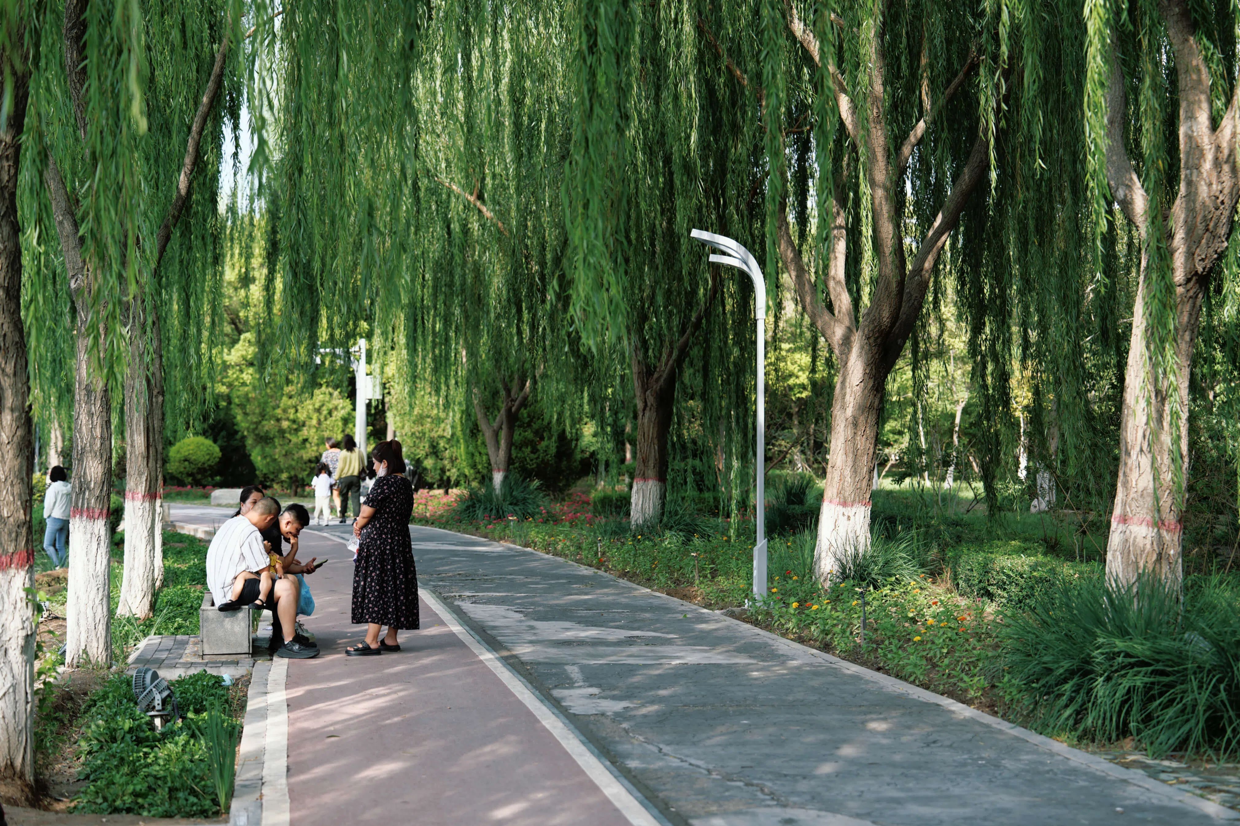 8月25日,市民在銀川市海寶公園休閑。新華社發(fā)?。ㄌ谱襄窋z)