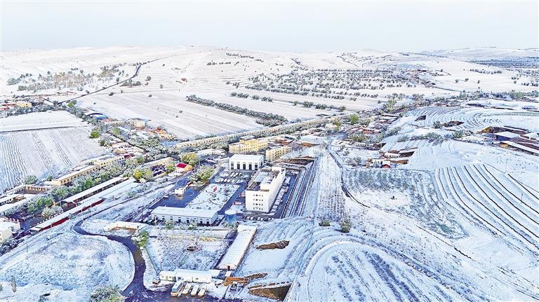 鹽池縣麻黃山鄉(xiāng),山川、田地、屋舍披上了一層“銀裝”。 寧夏日報(bào)報(bào)業(yè)集團(tuán)全媒體記者 祁國昌 王娜 馬賽爾 攝