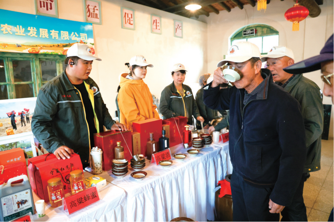 在農(nóng)產(chǎn)品展示區(qū),寧夏紅高粱農(nóng)業(yè)發(fā)展有限公司帶來的高粱醋、高粱酒、高粱蜂蜜、高粱面等高粱深加工產(chǎn)品,不僅包裝精美,還提供免費(fèi)品嘗,吸引了不少群眾駐足?!拔覀兘衲攴N植了3000畝高粱,還帶動(dòng)周邊群眾種植了2000多畝,現(xiàn)在高粱豐收了,深加工產(chǎn)品也很受歡迎?!惫矩?fù)責(zé)人安長(zhǎng)惠介紹,目前,公司已與貴州等省份簽訂了5萬噸高粱訂單,銷路不愁,接下來還計(jì)劃開發(fā)更多高粱系列產(chǎn)品,帶動(dòng)更多群眾增收致富。