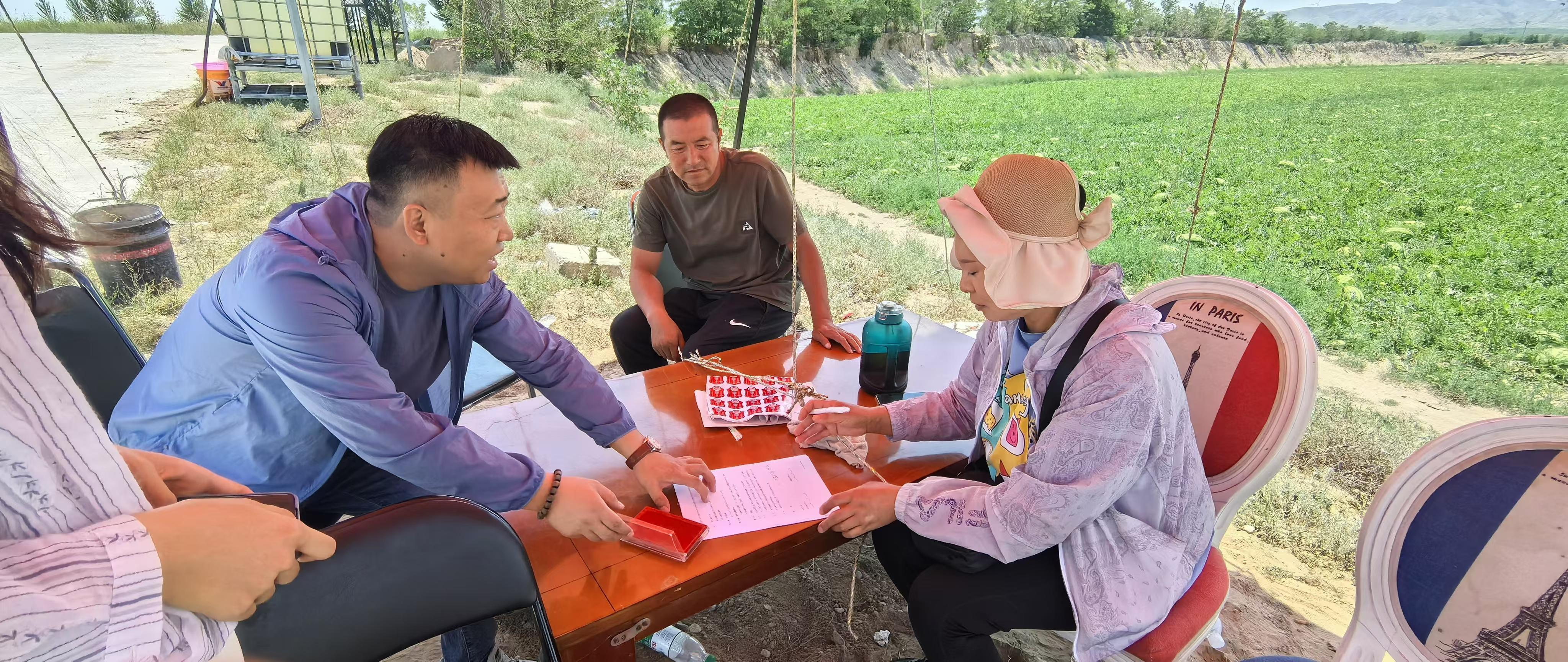 工作人員到田間地頭開展融資擔(dān)保業(yè)務(wù)。