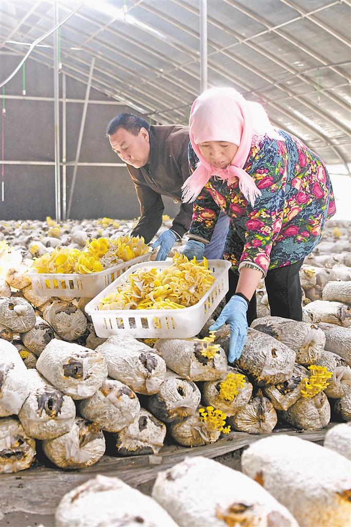 賀蘭縣洪廣鎮(zhèn)欣榮村村民采摘榆黃菇??萍继嘏蓡T張金河師從福建省古田縣為民食用菌研究所陳為平教授,帶領(lǐng)欣榮村村民冬種羊肚菌,夏種榆黃菇,幫助村民增收。 寧夏日?qǐng)?bào)記者 白茹 攝