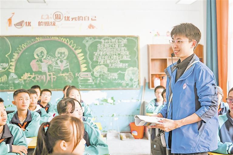 廈門大學(xué)第26屆研究生支教團(tuán)隊(duì)員黃拯之在永寧縣閩寧中學(xué)給學(xué)生上地理課。自1999年起,廈門大學(xué)持續(xù)選派研究生支教團(tuán)赴海原縣、隆德縣、彭陽(yáng)縣、永寧縣等地開(kāi)展教育幫扶。 寧夏日?qǐng)?bào)記者 李宏亮 攝