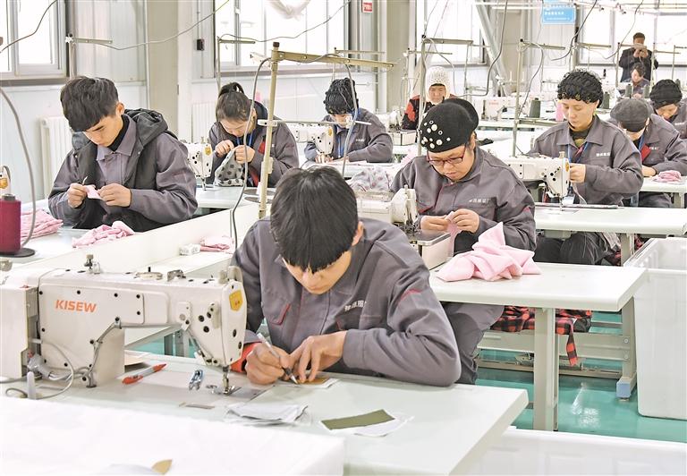 在同心縣王團(tuán)鎮(zhèn)圓棗村閩寧協(xié)作扶貧車間里,當(dāng)?shù)剞r(nóng)民實(shí)現(xiàn)就地就業(yè)增收。寧夏日?qǐng)?bào)記者 白茹 攝
