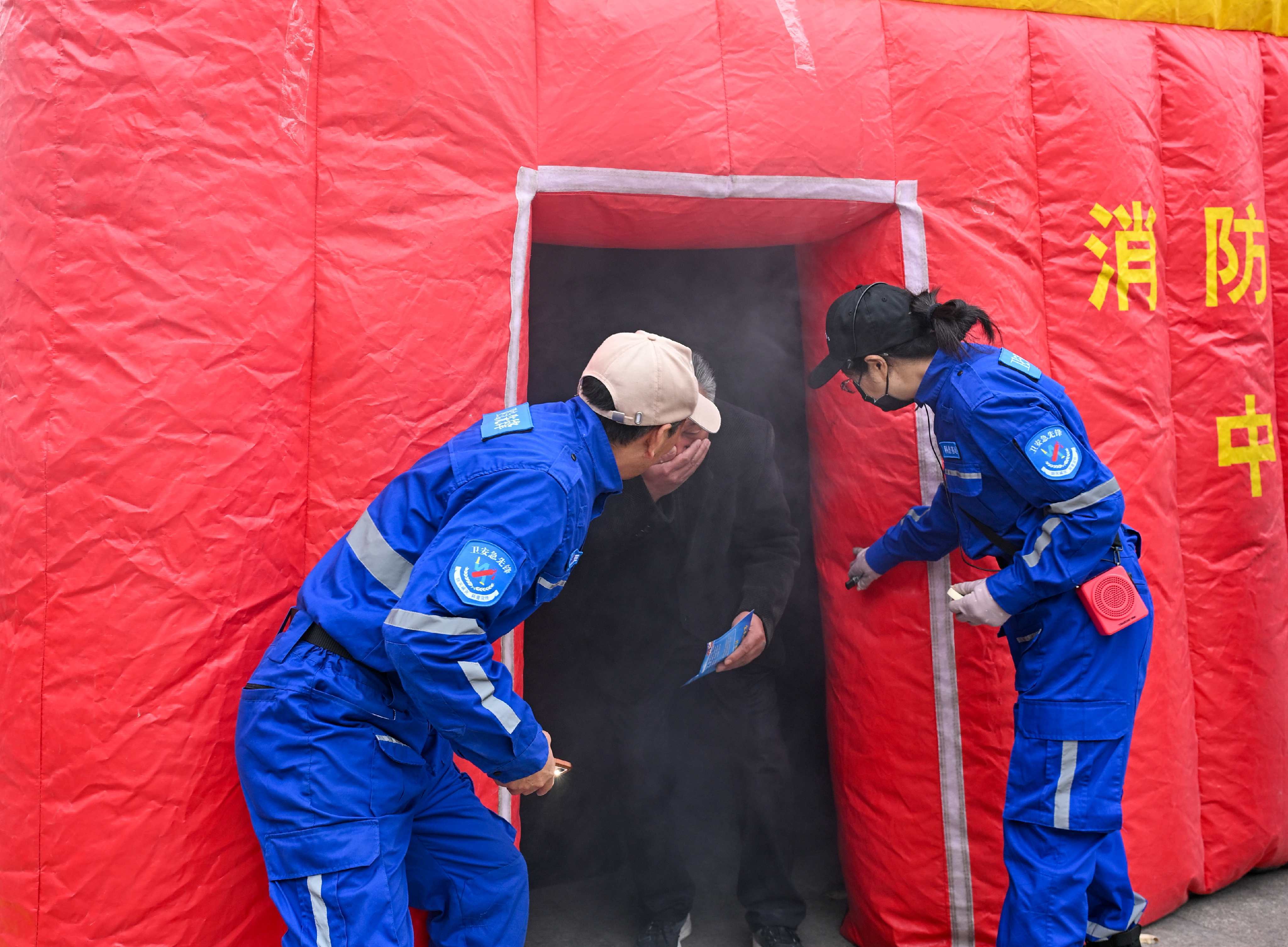 活動(dòng)現(xiàn)場(chǎng),十大消防特色展示區(qū)和體驗(yàn)區(qū)依次排開(kāi)、亮點(diǎn)紛呈?,F(xiàn)場(chǎng)群眾手持“通關(guān)卡”,沉浸式參與體驗(yàn)“消防勇士大闖關(guān)”互動(dòng)游戲。
