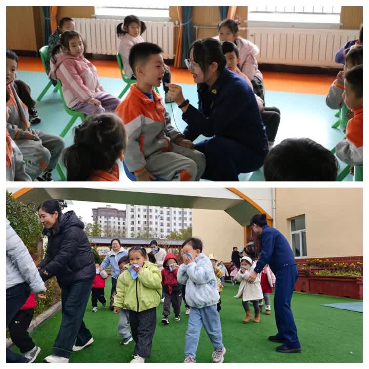 隨著警報聲響起,消防應(yīng)急疏散演練正式拉開帷幕。全園幼兒在有序引導(dǎo)下,按照預(yù)定路線,用濕毛巾捂住口鼻,彎腰低姿,快速、安全地撤離至操場指定區(qū)域。