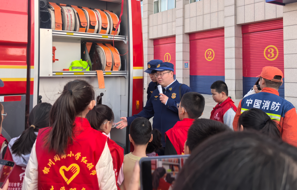 消防車輛也成為“打卡點”——水罐消防車等專業(yè)裝備整齊列陣消防員逐一介紹車輛功能與裝備配置,熱情邀請老師同學們登車體驗,近距離觸摸“消防重器”,直觀感受消防救援車輛裝備。
